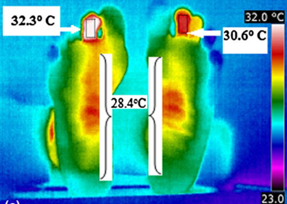 圖為伴隨早期胃潰瘍的糖尿病患者腳部熱成像圖